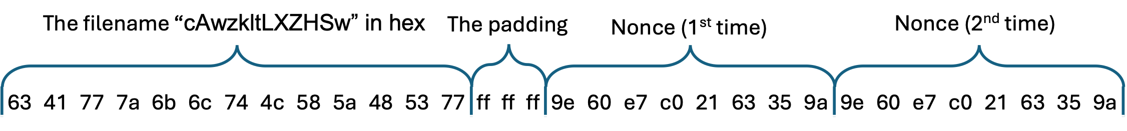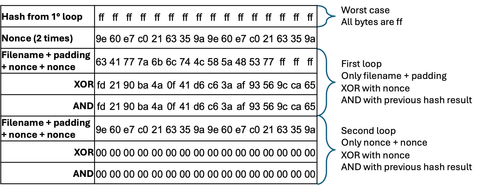 The nonce of 8 bytes, repeated to reach the hash length The result would be the following 32 bytes: These would cancel out any contribution by both the file content and the filename itself, leading to the digest 00000000000000000000000000000000 (00, 16 times):